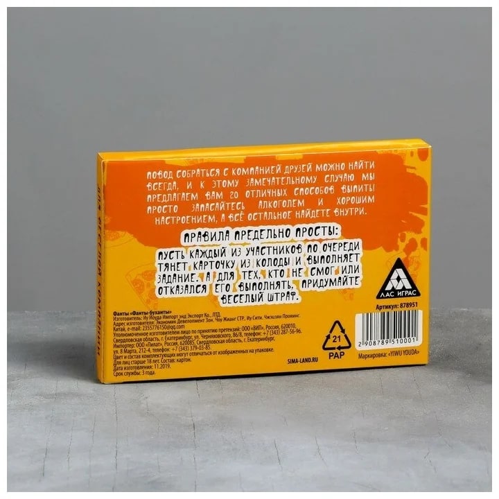 Купить игра для компании "фанты буханты" 20 карт от 100 руб. с доставкой до пункта выдачи в Горбатове. Интернет магазин ДекаМаркет. Оплата при получении.